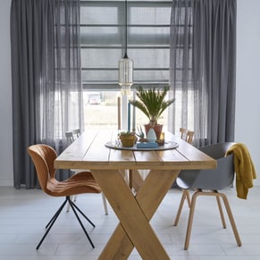 Inbetweens geven het interieur een open en luchtig gevoel. Als het zonnetje buiten schijnt, wilt u daar binnen van meegenieten. Wanneer een gordijn zonlicht doorlaat, krijgt u namelijk een prachtige lichtinval in de kamer. Inbetweens zitten qua doorschijnendheid tussen vitrages en overgordijnen in. Ze dragen bij aan een goede akoestiek, zonder al te veel licht weg te nemen. Maar ze maken het interieur vooral gezellig.
