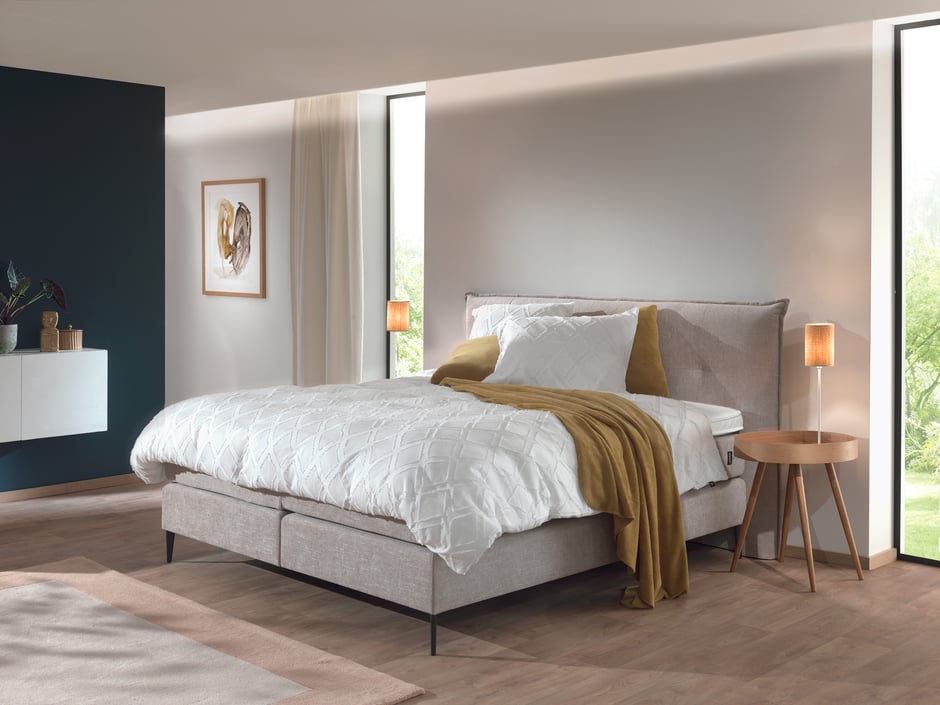 Alle boxsprings zijn verkrijgbaar in veel verschillende stoffen, kleuren en poten. Onze boxsprings zijn voorzien van een 7 zone pocketveer, welke zorgt voor een stabiele basis. De combinatie van een 7 zone pocketveermatras, welke is afgedekt met een hoogwaardig koudschuim (Hr), en een topper naar keuze zorgt ervoor dat u uitgerust aan een nieuwe dag kunt beginnen. De toppers zijn er in de volgende kwaliteiten: Hr Soft & Medium, Pulse (Natuur) Latex, Pearl Gel en Flo Foam.